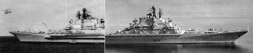 “頂帆”對空警戒雷達(dá)(“巴庫”號為“天空哨兵”相控陣對空警戒雷達(dá)),“頂 舵”對空/對海警戒雷達(dá),“陷口”制導(dǎo)雷達(dá)(用于SS-N-12),“雙頭燈”制導(dǎo) 雷達(dá)(用于SA-N-3),“氣槍群”制導(dǎo)雷達(dá)(用于SA-N-4),“梟聲”炮瞄雷達(dá) (用于76毫米火炮),“低音帳篷”炮瞄雷達(dá)(用于30毫米近防炮),“十字劍” 制導(dǎo)雷達(dá)(用于SA-N-9) ? 航速:32節(jié) ? 動力:8臺鍋爐,4臺蒸汽機(jī),4軸,雙舵,200000馬力 ? 續(xù)航力:13500海里/18節(jié),4000海里/31節(jié) ? 航員:1500人(其中航空人員300名左右) |
