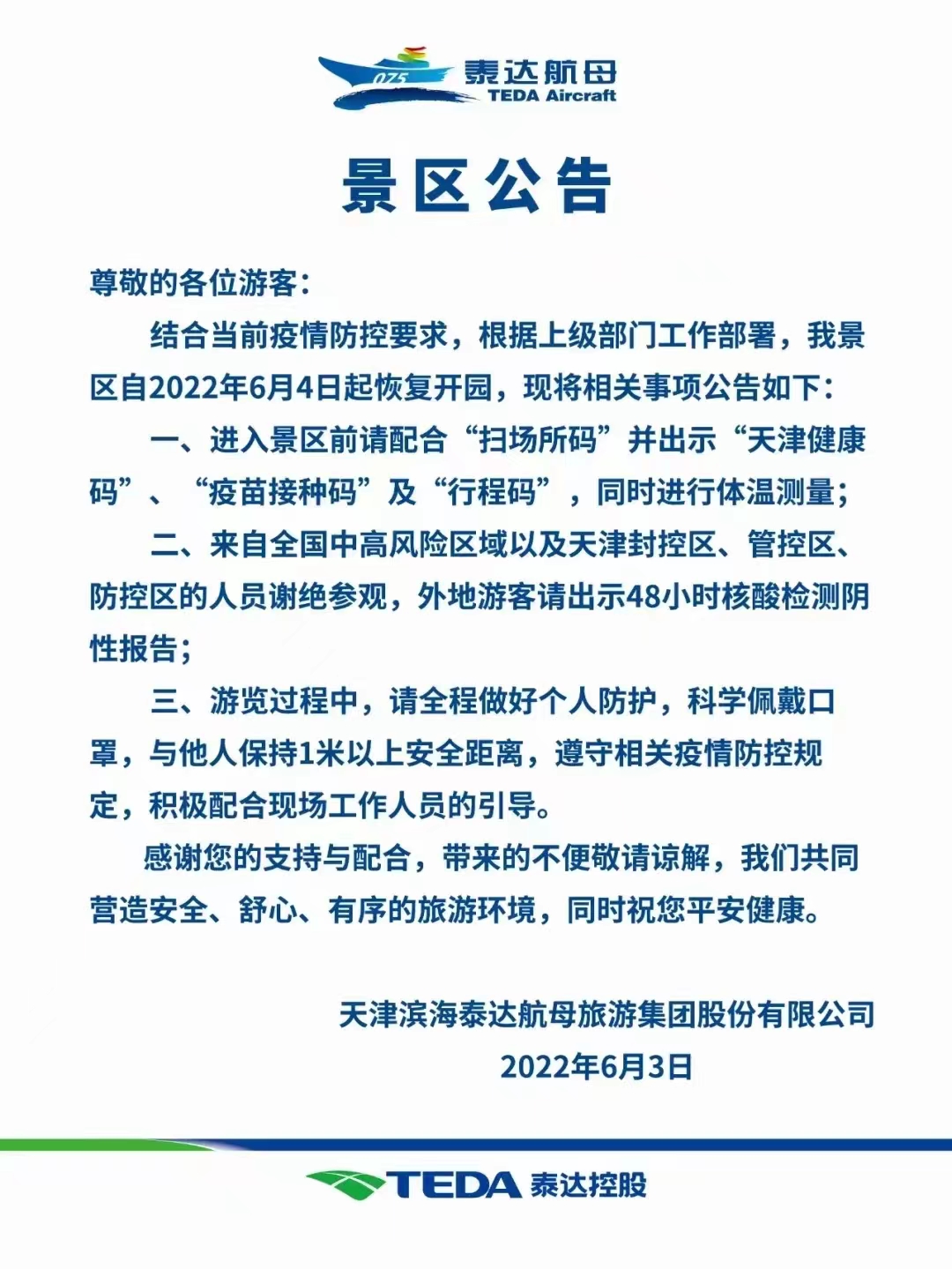 9月25日下午,濱海新區副區長梁益銘帶隊赴泰達航母察看5A創建工作進展情況并開展國慶、中秋節前安全檢查。區文旅局局長賀淑榮、副局長李春年及產業室相關同事陪同,泰達航母主要領導及有關負責同志參加。 益銘副區長一行先后察看了停車場公交場站衛生間、暖心驛站、安檢口、綜合指揮中心、游客服務中心、文化商業街沿線及航母艦上等重點區域5A升級成果,沿途聽取了航母國慶、中秋雙節活動安排及安全保障方案。 益銘副區長對泰達航母創建5A景區工作以來,在硬件設施全面升級、整體環境品質躍升等方面取得的成果予以充分肯定。他強調,硬件迭代是景區發展的根基,而細節服務是彰顯品質的核心,要始終秉持 “服務無上限” 理念,以游客需求為導向,從游客體驗出發打磨服務細節,持續提升景區軟實力。 益銘副區長對國慶、中秋期間安全工作及5A景區迎檢工作提出以下要求:一是要始終筑牢安全防線,堅決摒棄“以經驗代替檢查”的僥幸心態,杜絕麻痹大意思想,充分利用節前窗口期扎實開展安全排查,并在必要時聘請第三方專業力量予以強化。二是要強化臨時人員培訓管理,針對節假日臨時用工集中的特點,務必前置開展安全規范、服務禮儀及應急處置專項培訓,推動安全保障、服務提升與應急響應深度融合,確保突發事件“快響應、高效率、妥處置”。三是要壓緊壓實主體責任,構建從管理層到一線崗位的全鏈條責任體系,推動責任層層落實、一竿子到底,全力保障節假日期間園區安全平穩有序運營,以最佳狀態迎接5A評審,全方位護航廣大游客度過一個歡樂祥和、安全舒心的雙節假期。